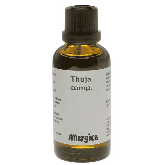 Thuja comp. er et håndpotenseret homøopatisk lægemiddel, som indeholder aktivstoffer i stærkt fortyndet og bearbejdet form.